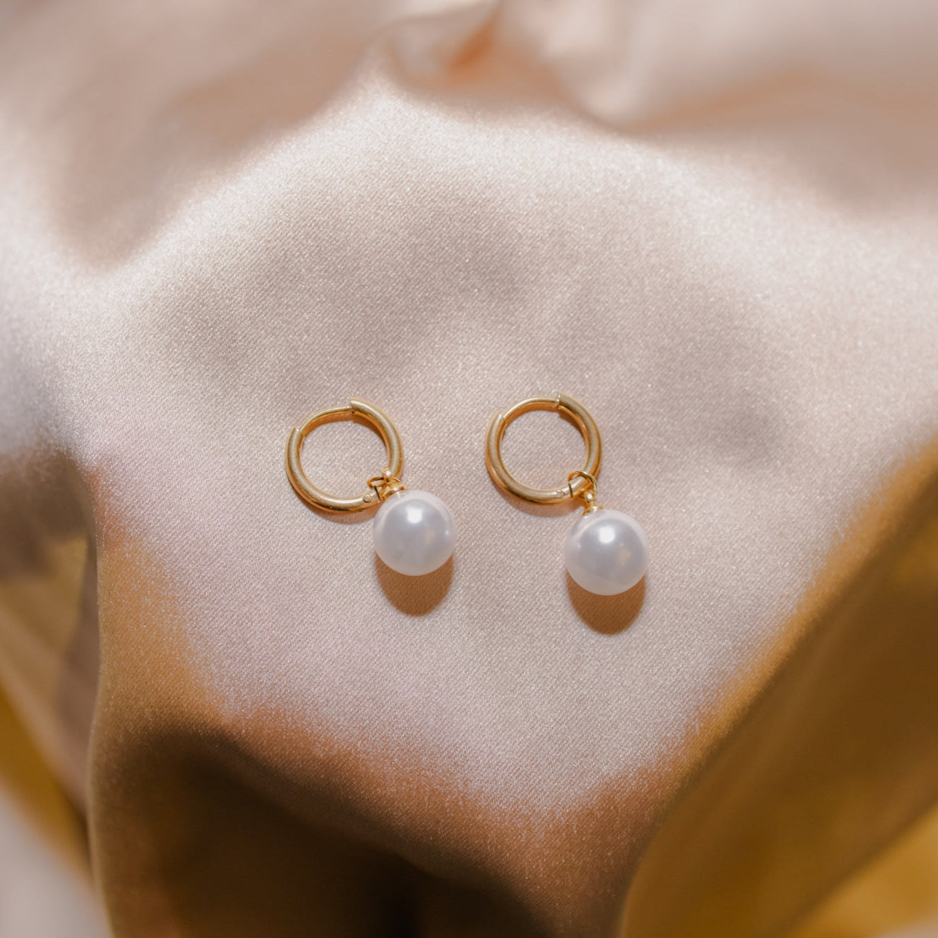 Delicadas pantallas de acero inoxidable con chapado en oro, incorporan detalles tipo perla que añaden luminosidad y elegancia. Medidas: 1.5 x 2.5 cm, resistente al agua e hipoalergénica. Las compañeras perfectas para quienes buscan una declaración de delicadeza radiante.