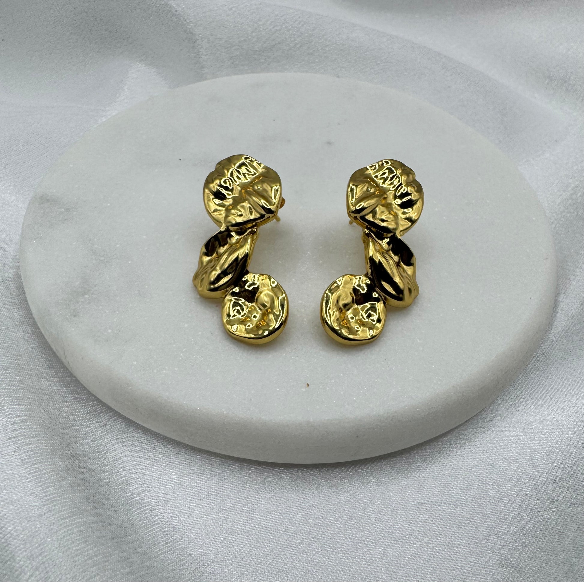 Elegantes pantallas de acero inoxidable con chapado en oro, incorporan diseño alargado que aporta sofisticación y movimiento. Medidas: 1.6 x 3.3 cm, resistentes al agua e hipoalergénicas. Las compañeras perfectas para quienes buscan un look elegante y moderno.