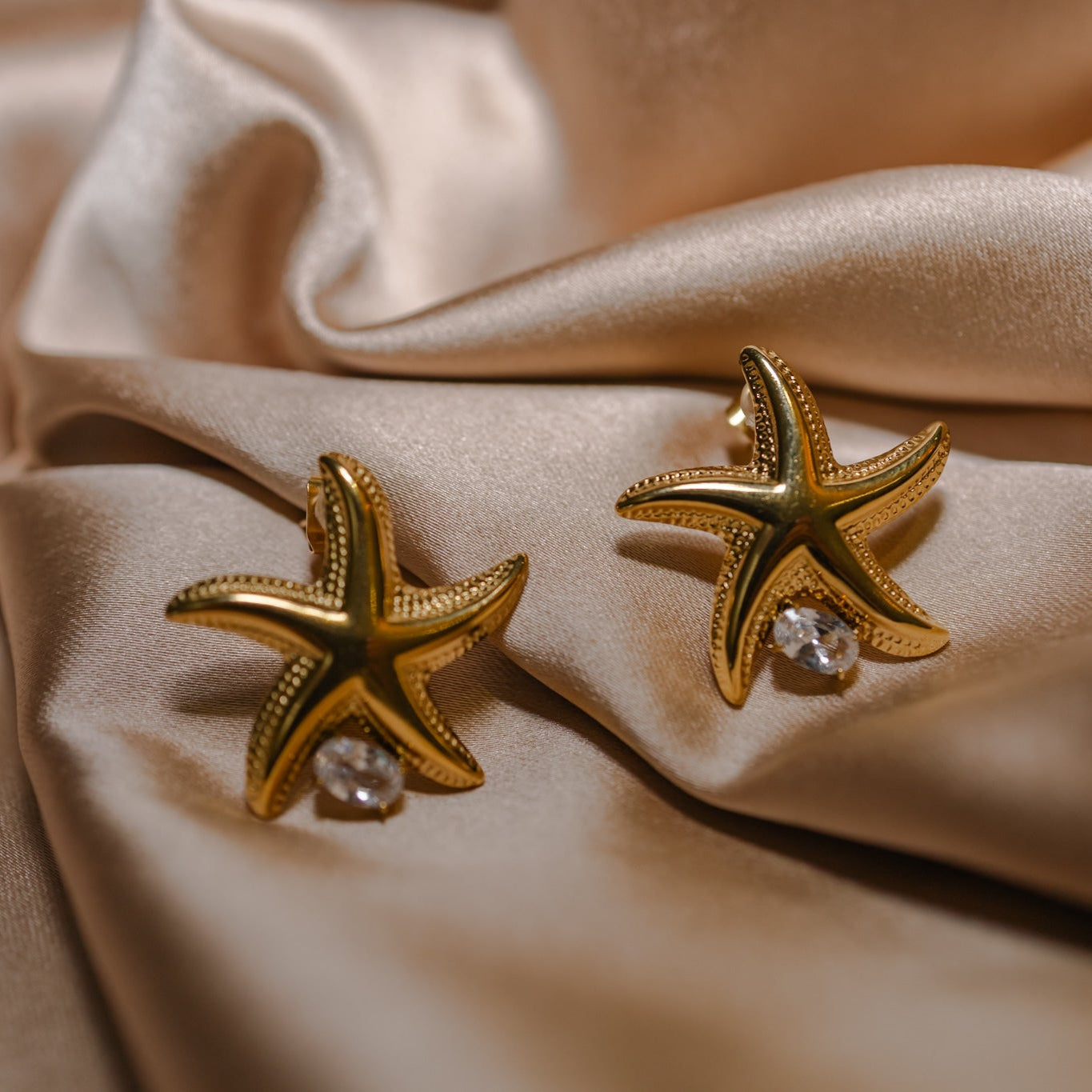 Hermosas pantallas de acero inoxidable con excelencia y chapado en oro, incorporan diseño de estrellas con cristales brillantes que capturan cada rayo de luz creando destellos únicos. Medidas: 2.5 x 2.4 cm de tamaño perfecto para máximo impacto, resistentes al agua e hipoalergénicas. Las compañeras perfectas para quienes buscan una declaración de elegancia radiante.